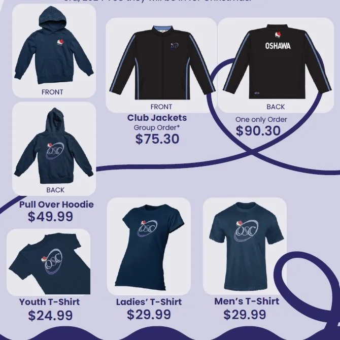 We are working with BNC Pro Shop @ Delpark to make available Oshawa Skating Club hoodies, jackets, and T-Shirts. These items have the OSC logo on them and are available in different colours. See below to order yours!